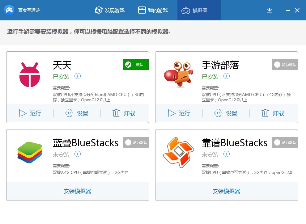 百度互通游是一款电脑玩安卓手游软件,专注于为各位玩家推荐手游、集合了市面上最新最热的安卓手游,同时聚集市面上最热门的手游模拟器,您要做的只是选好游戏直接玩!